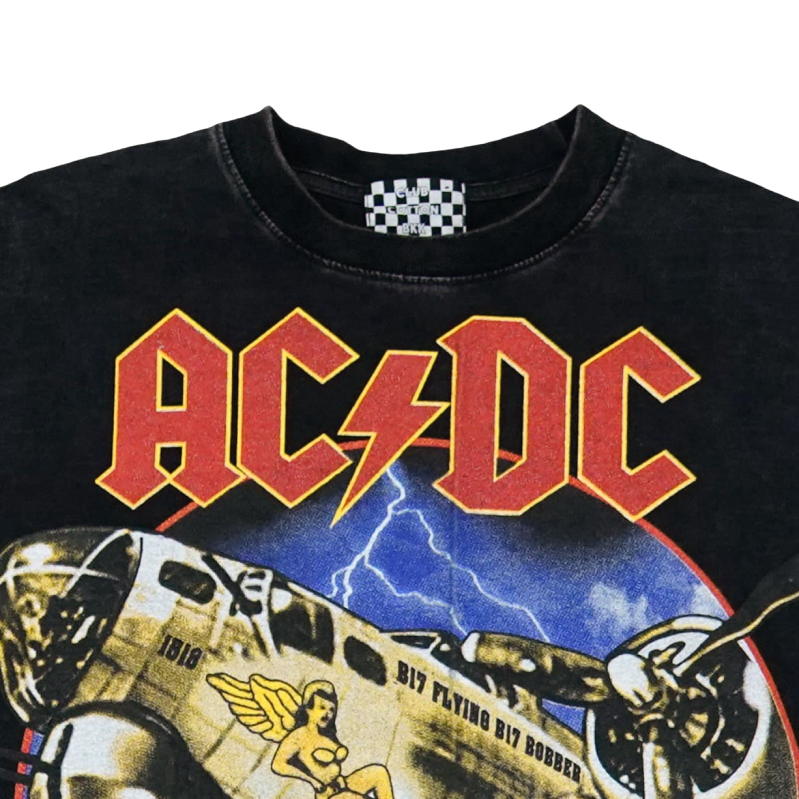 Pánské černé washed tričko značky Club Cotton BKK s dlouhým rukávem a potiskem AC/DC Rock or Bust Tour 2016 z obou stran.