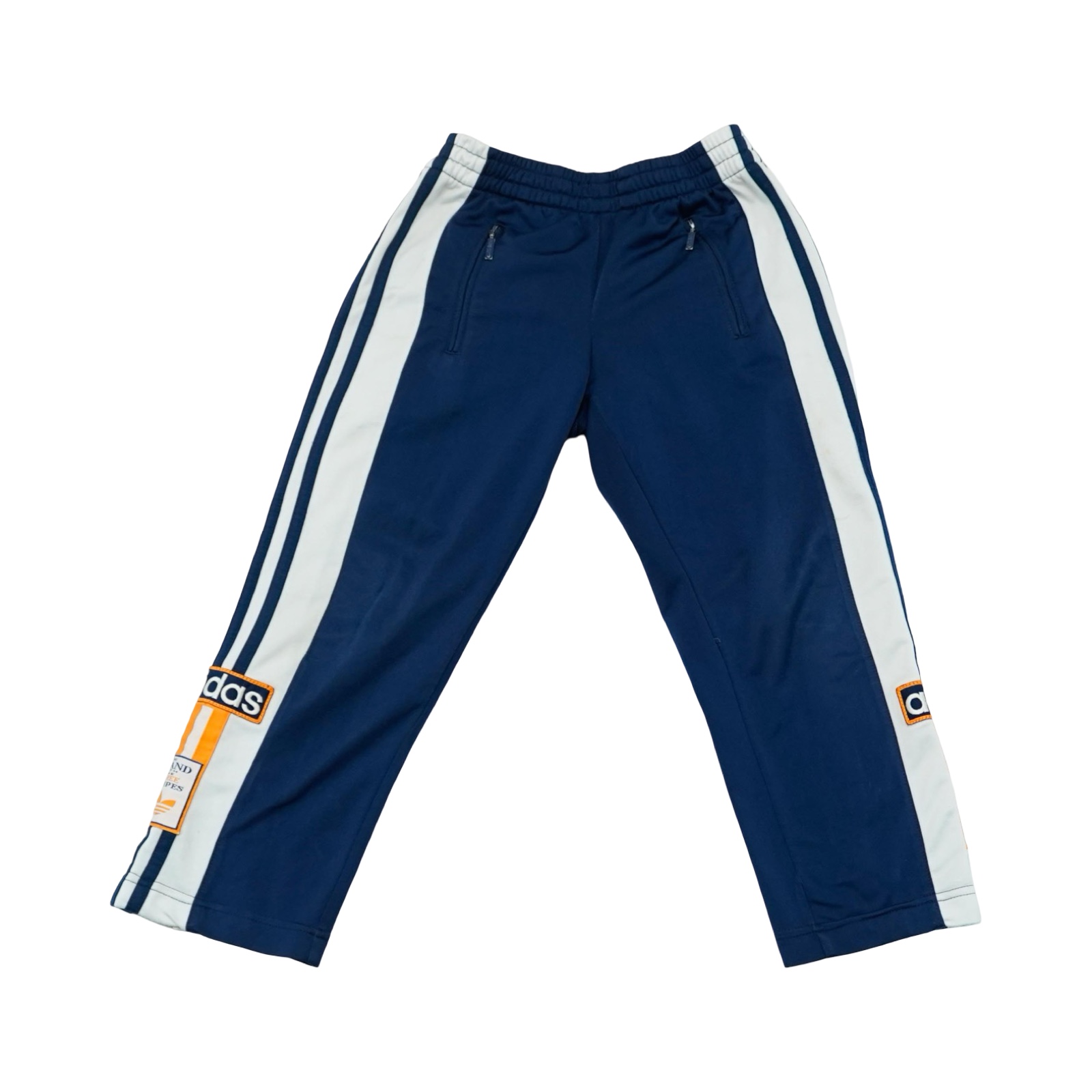 Dětské tmavě modré vintage tracksuit tepláky značky Adidas s nášivkou.