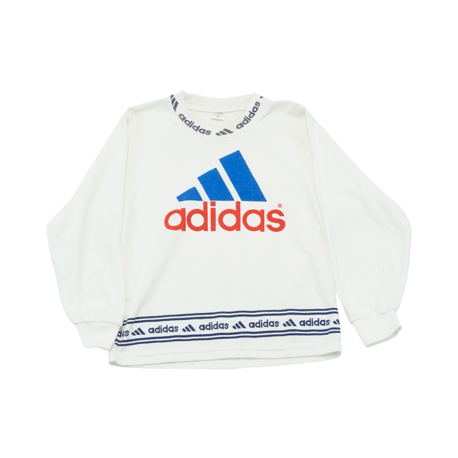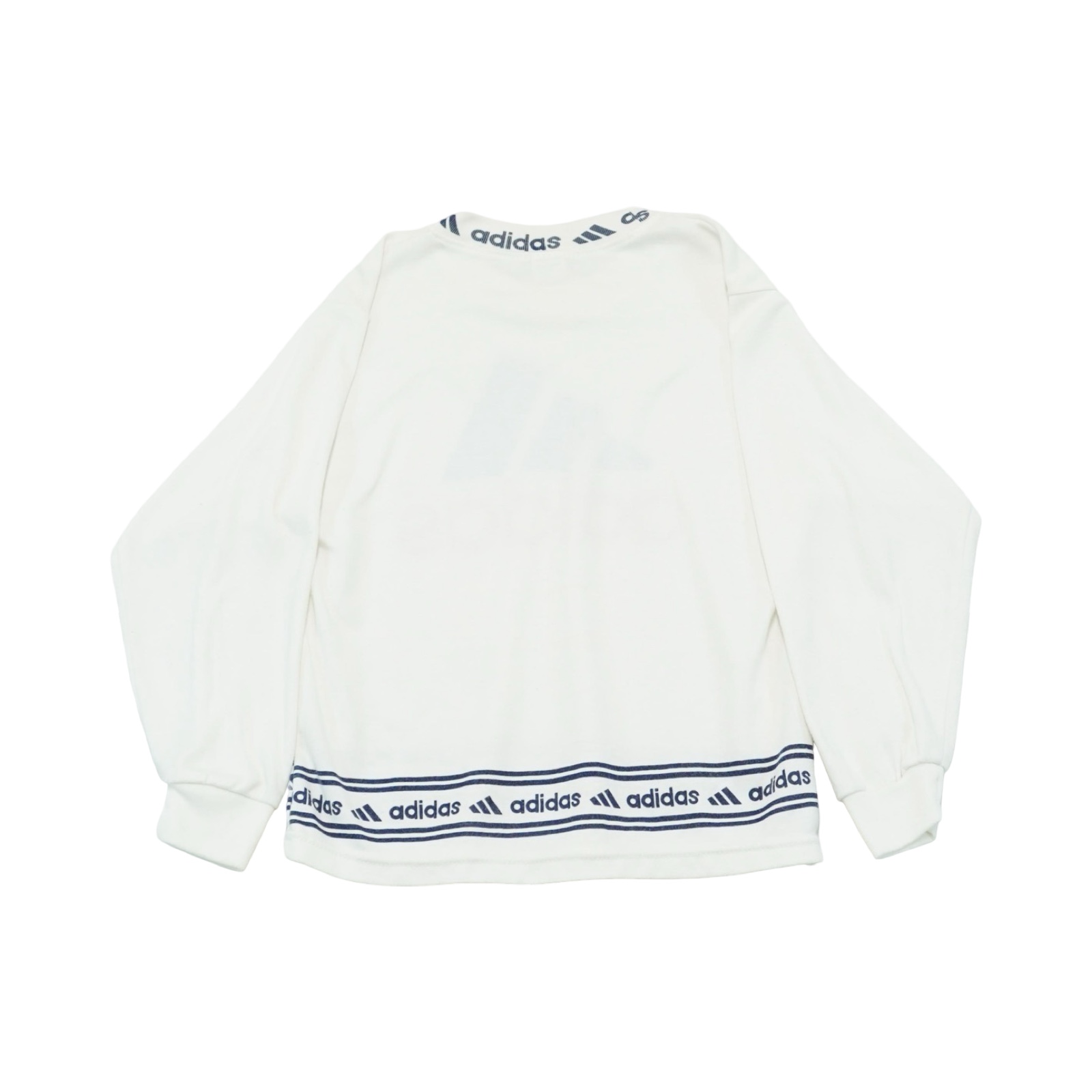 Dětský bílý vintage crewneck značky Adidas s potiskem z obou stran.
