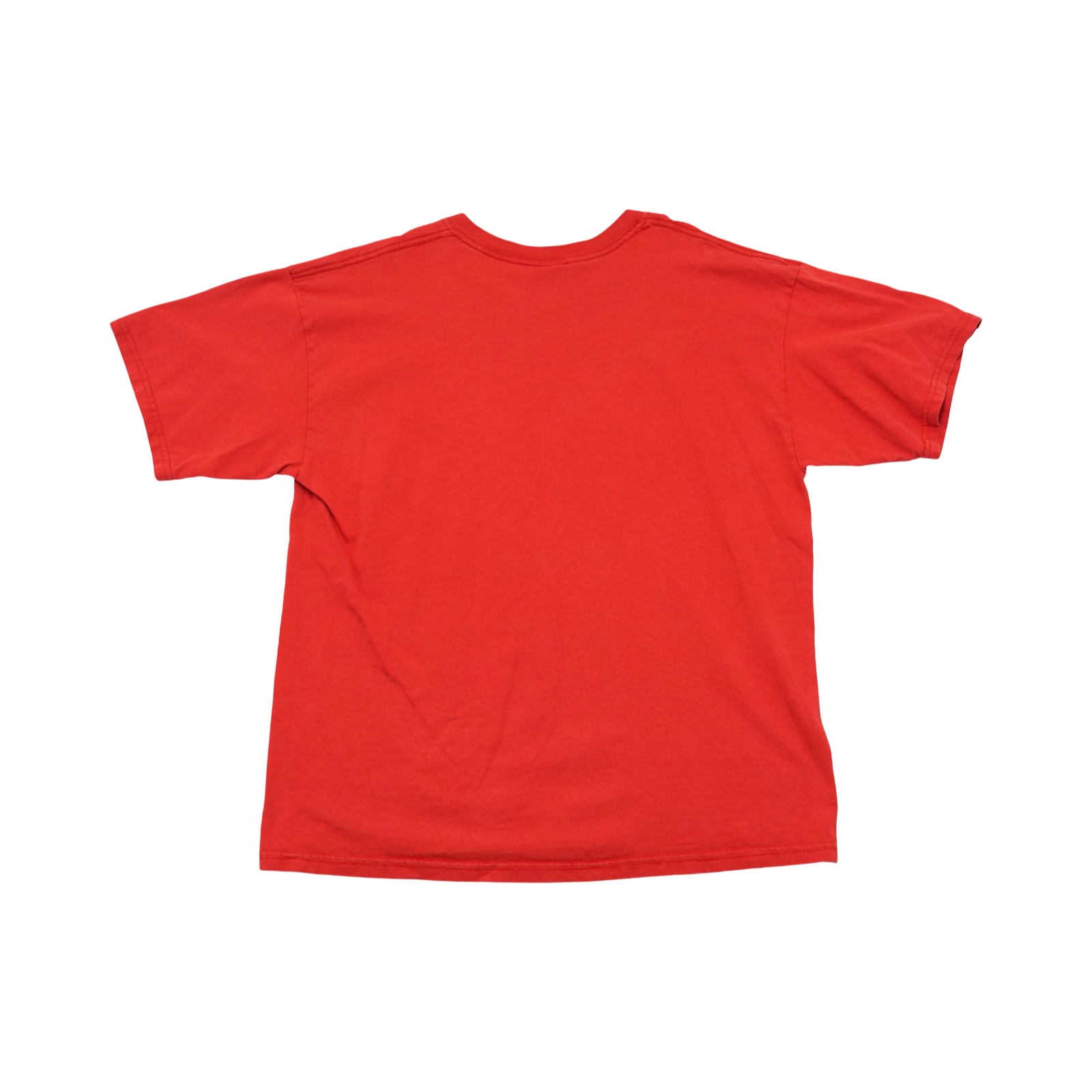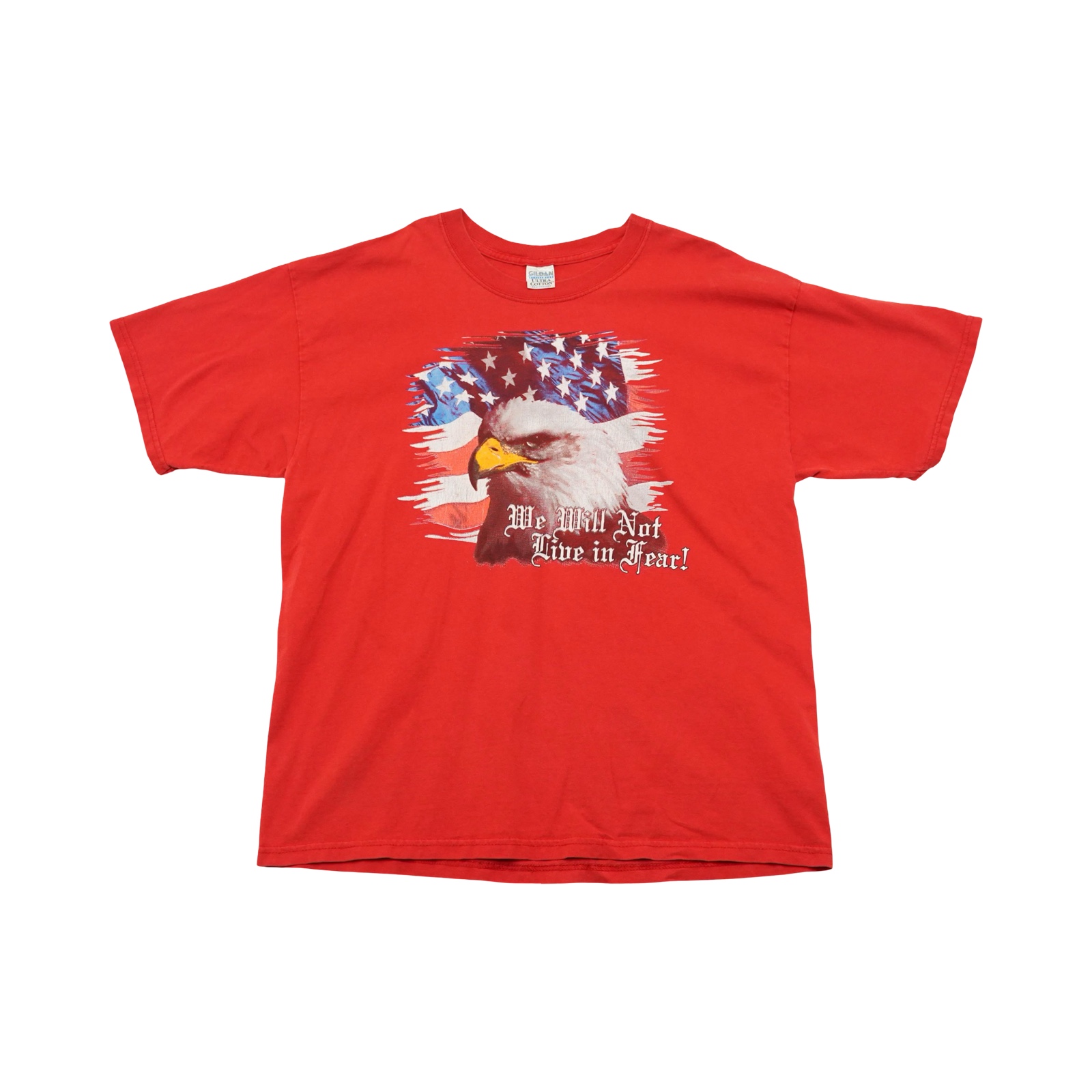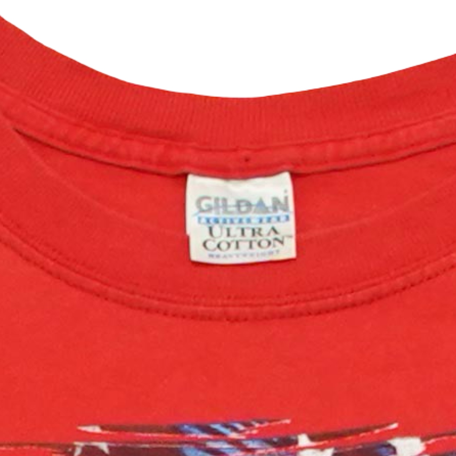 Pánské červené vintage tričko značky Gildan s krátkým rukávem a potiskem American Eagle na přední straně.
