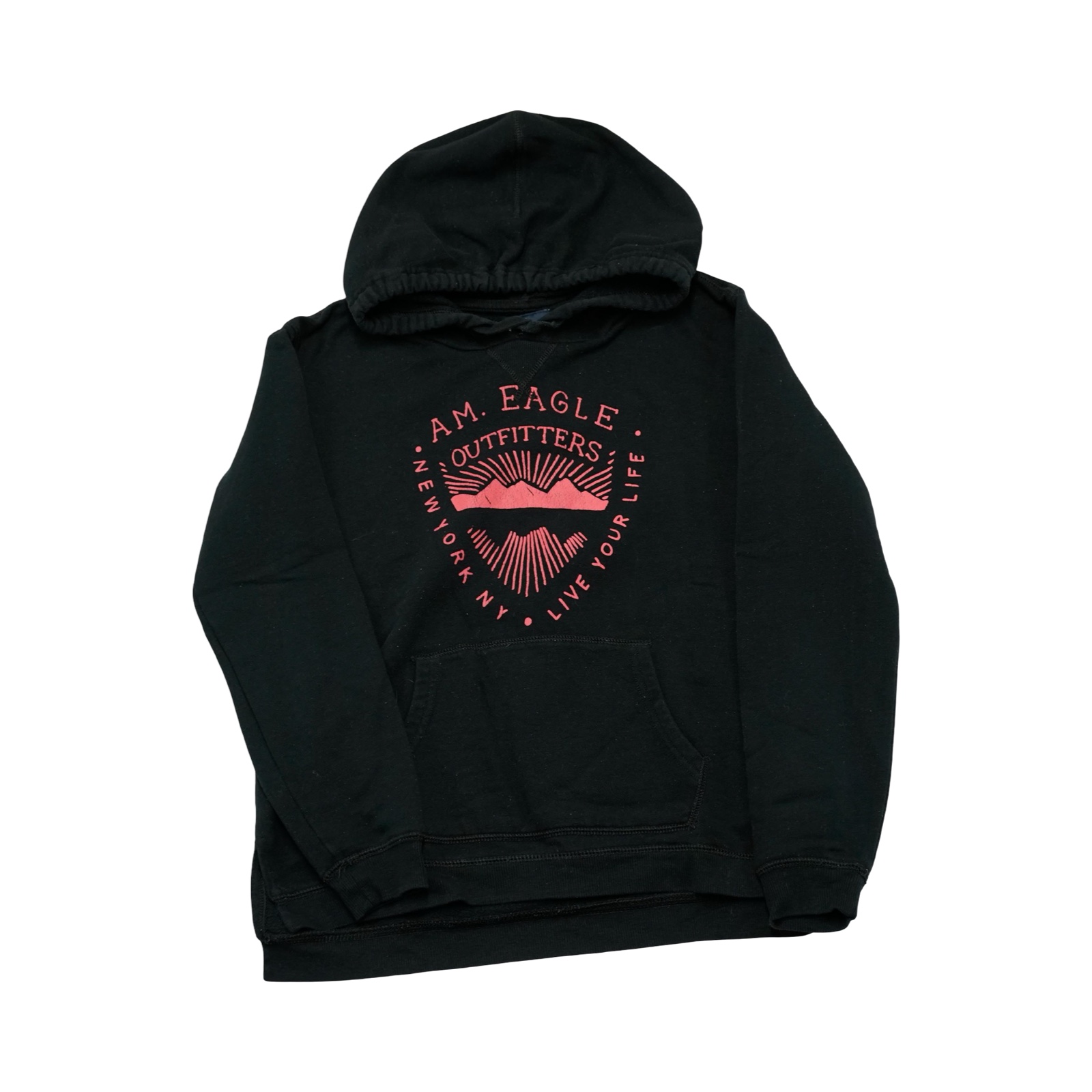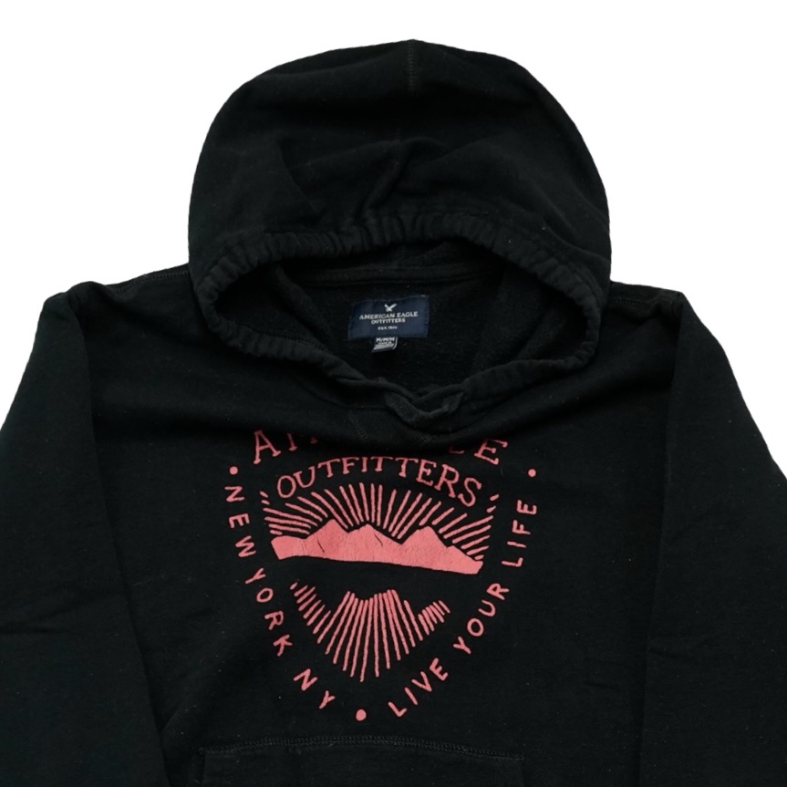 Dámská černá mikina s kapucí značky American Eagle s potiskem na přední straně.
