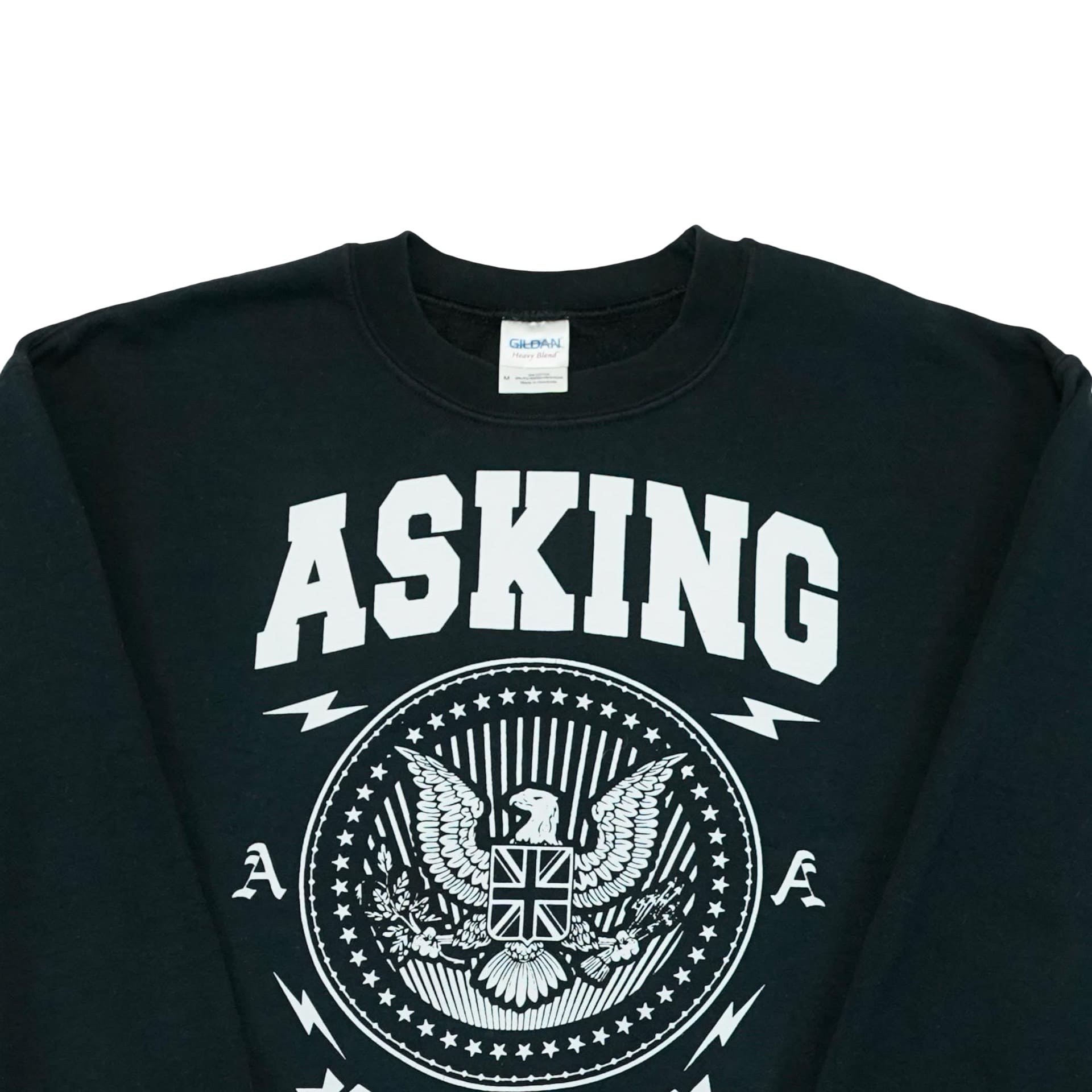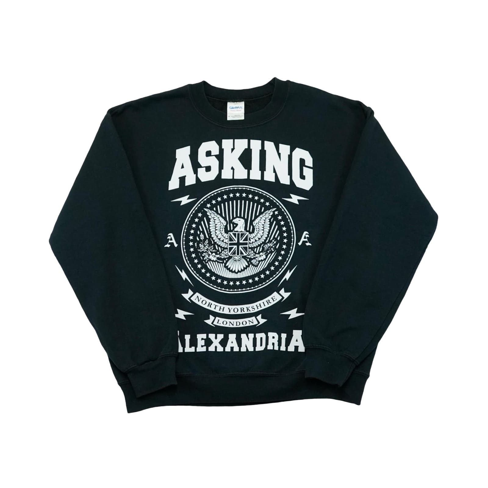 Pánský černý crewneck značky Gildan s potiskem anglické rockové skupiny Asking Alexandria na přední straně.