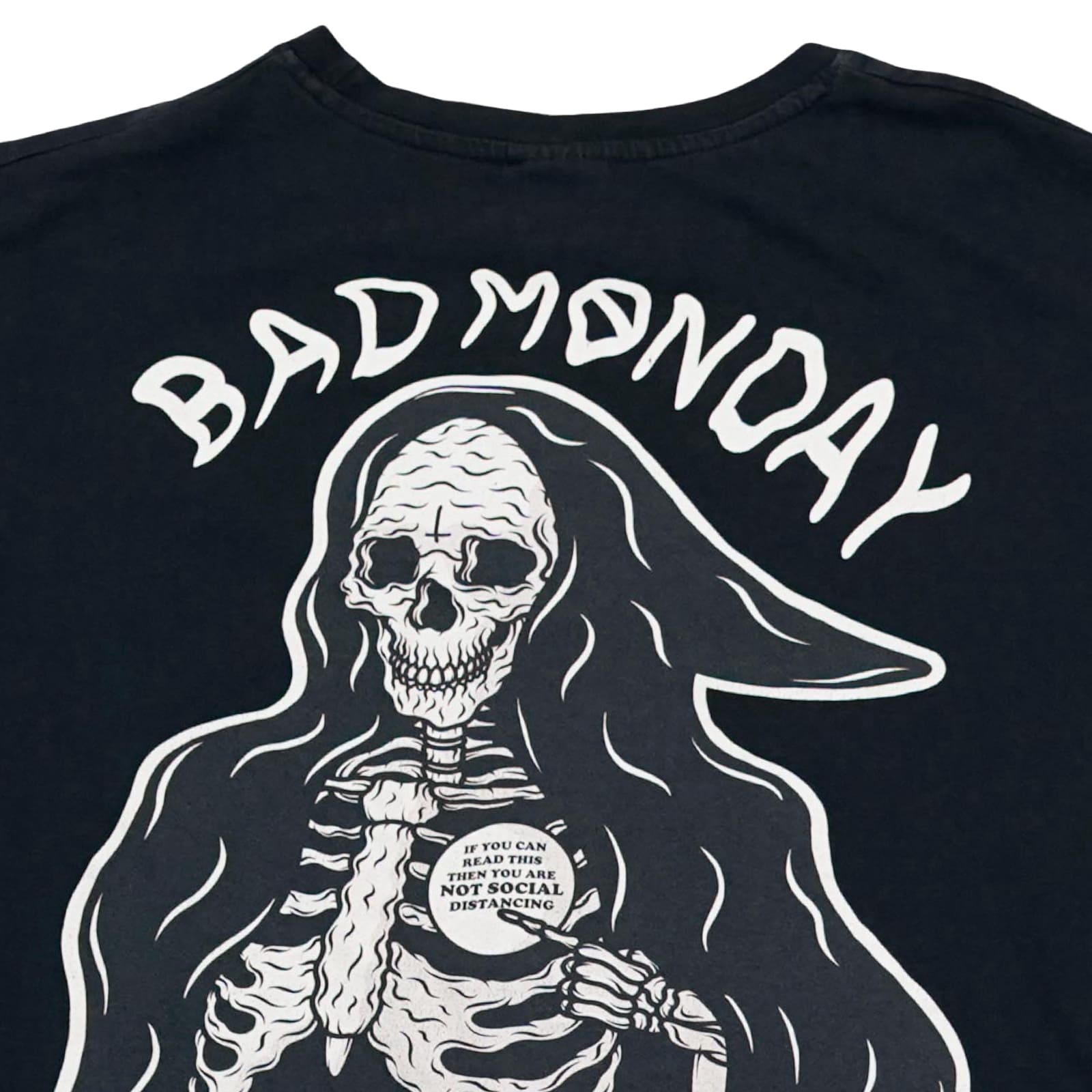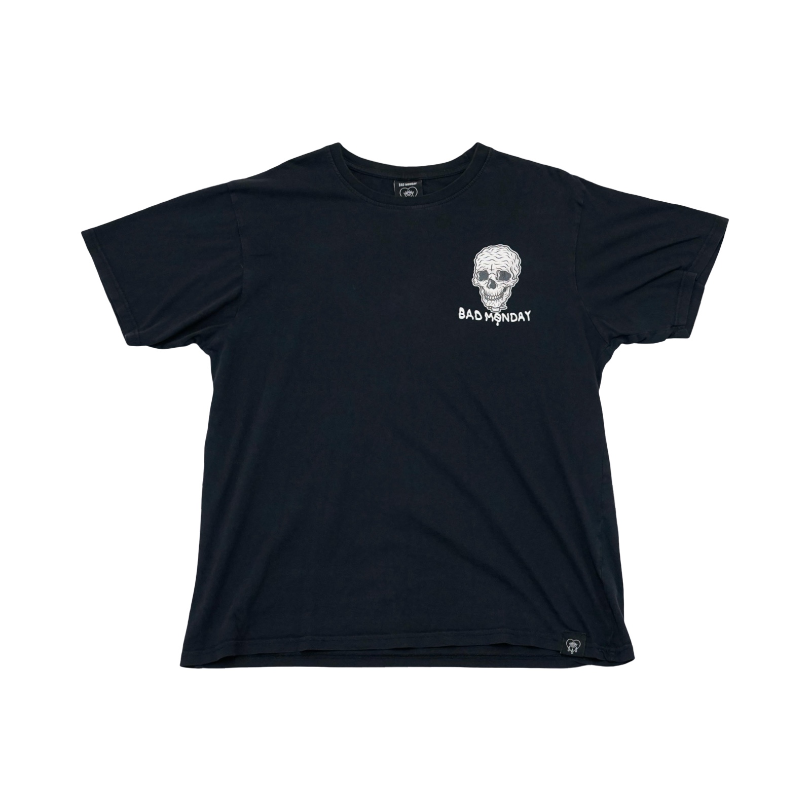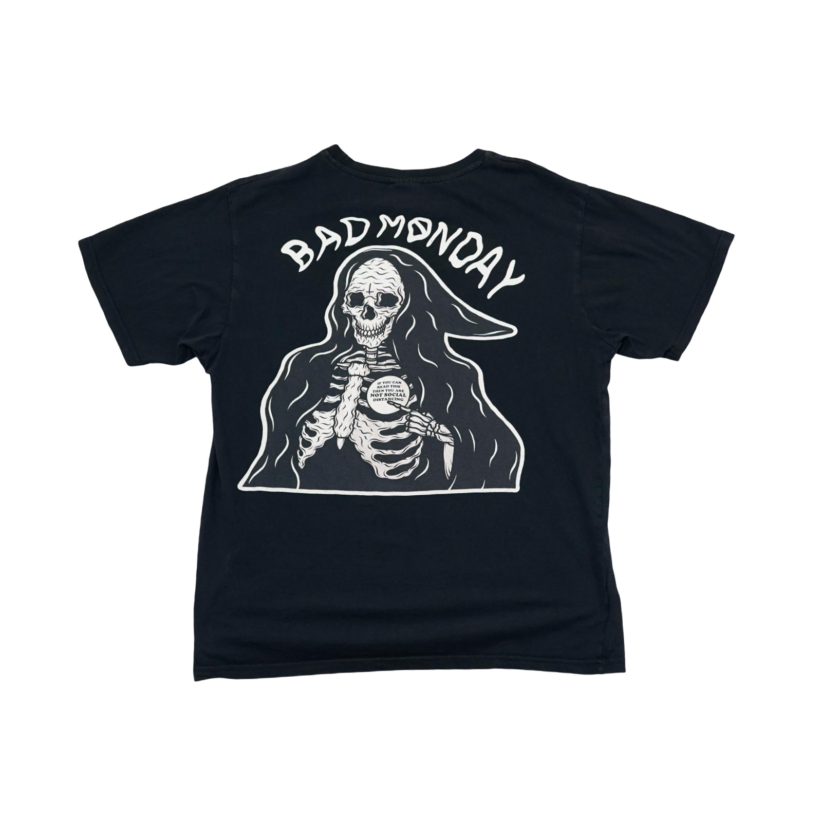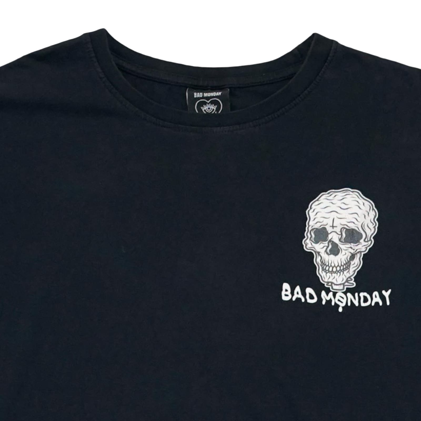 Pánské černé tričko značky Bad Monday s krátkým rukávem a potiskem z obou stran.