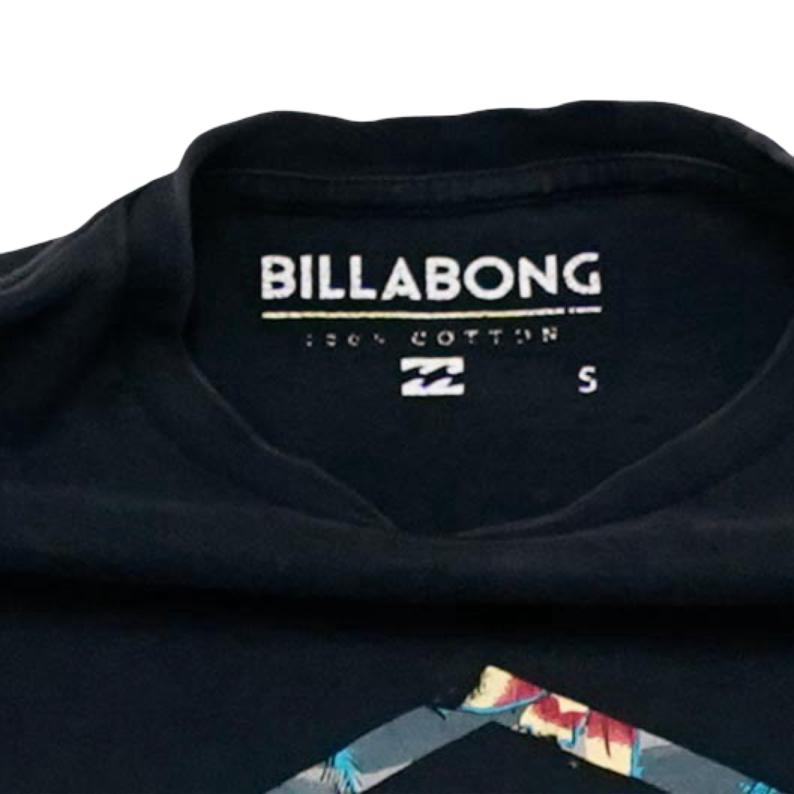 Pánské černé tričko značky Billabong s krátkým rukávem a potiskem na přední straně.