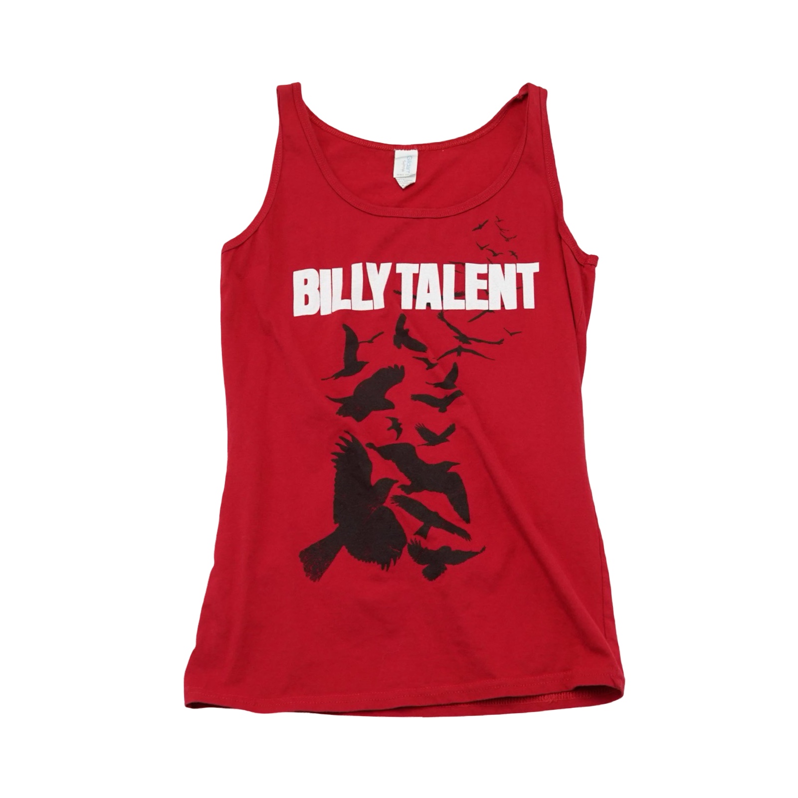 Dámské červené tílko značky Gildan s potiskem rockové kapely Billy Talent na přední straně.