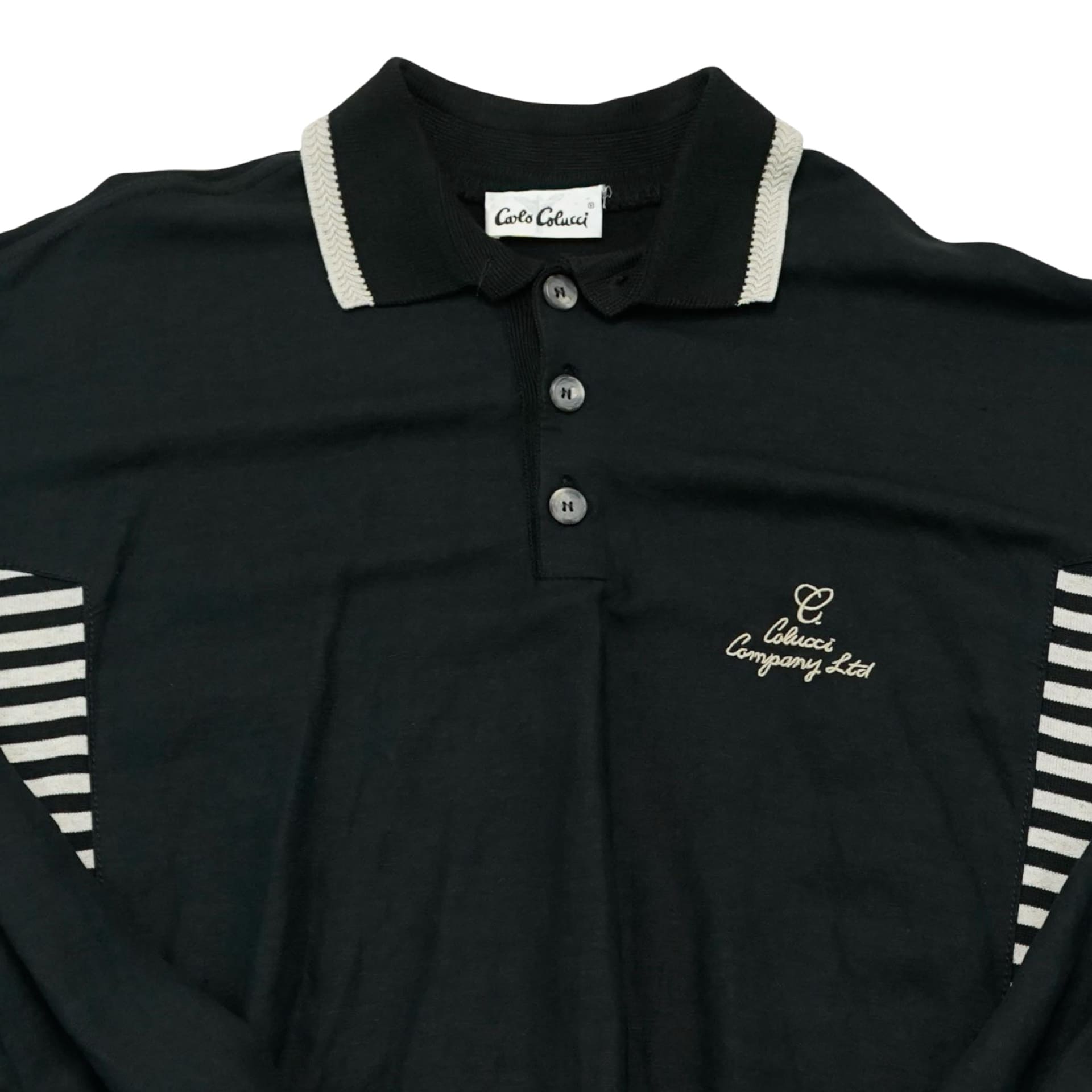 Pánský černý vintage svetr značky Carlo Colucci s nášivkou na přední straně.