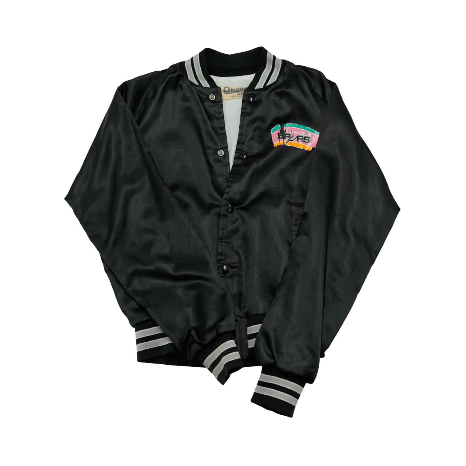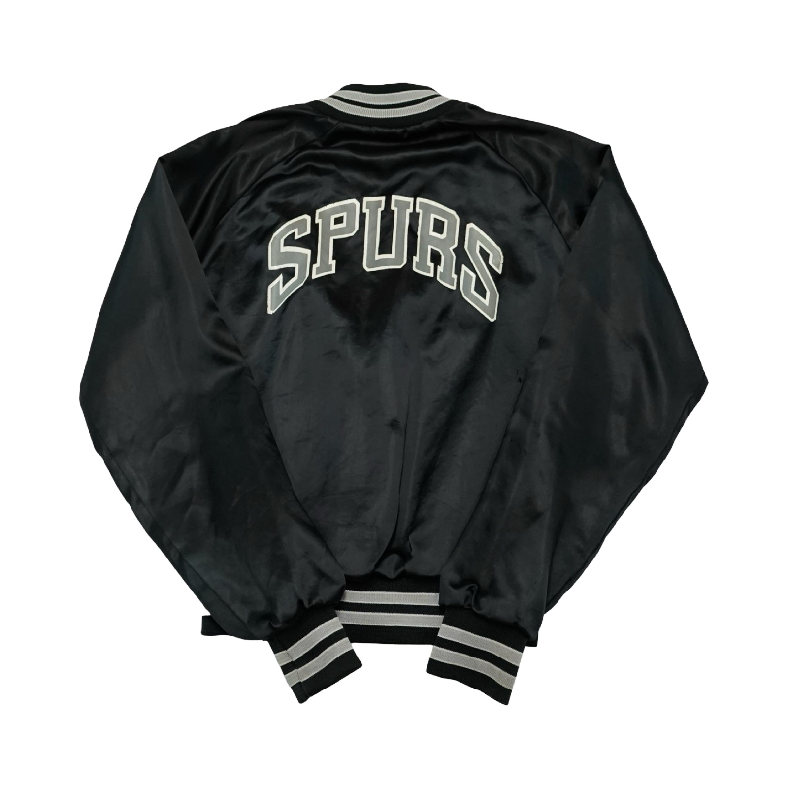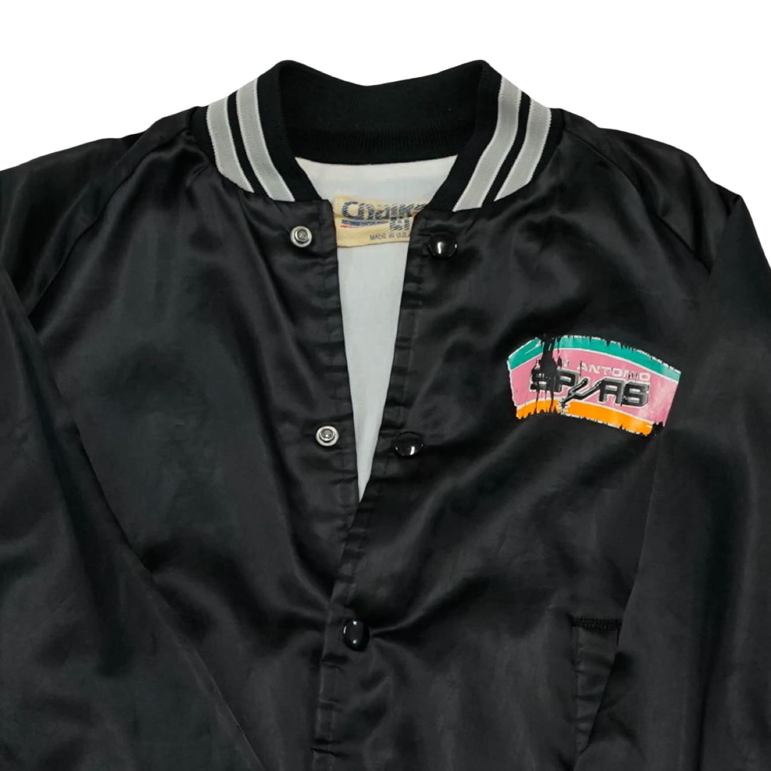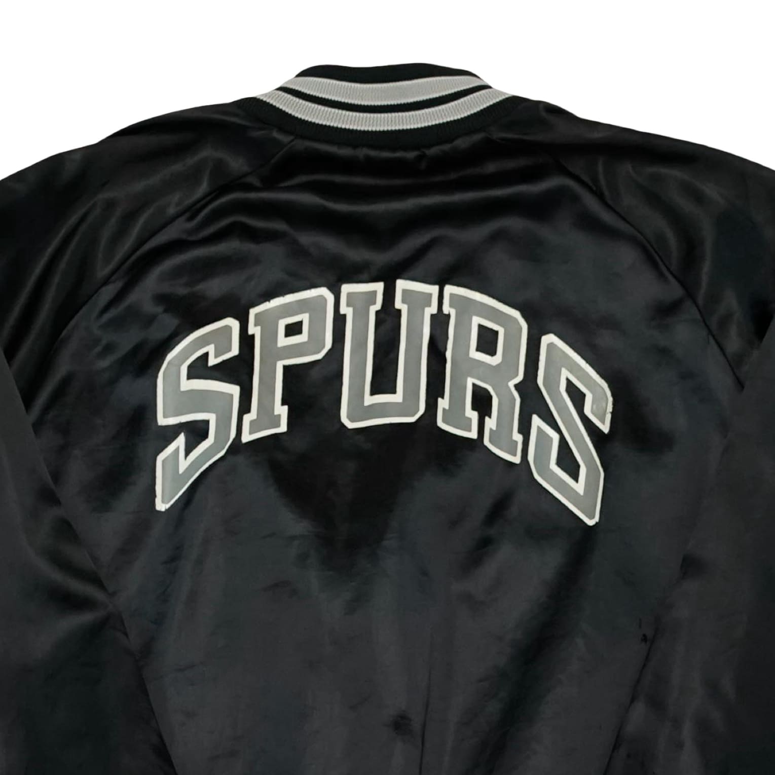 Pánská černá vintage bomber bunda značky Chalk Line s motivem amerického basketbalového NBA týmu San Antonio Spurs z obou stran.