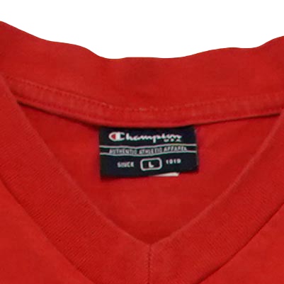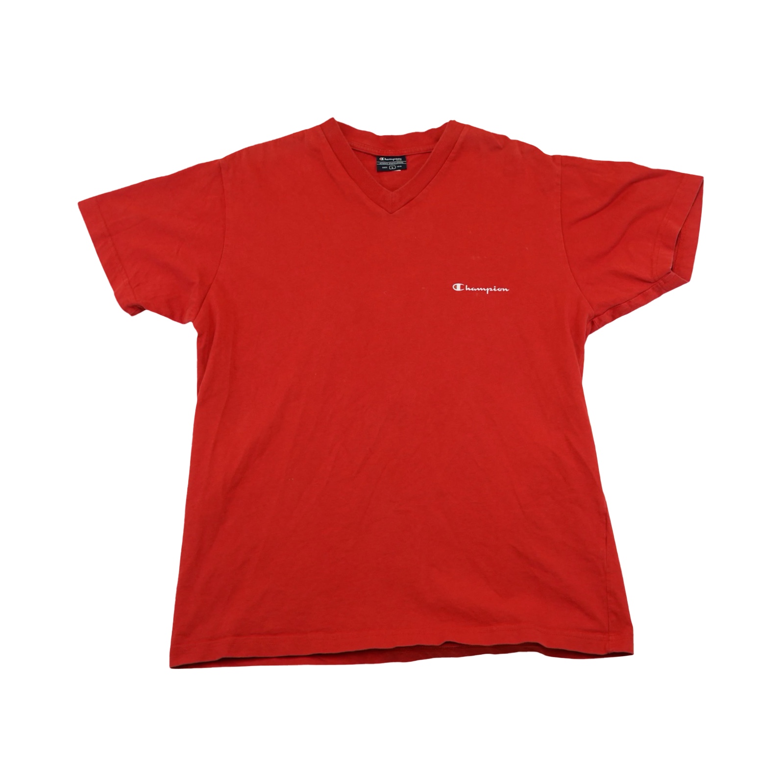 Pánské červené vintage tričko značky Champion s malým potiskem na přední straně.