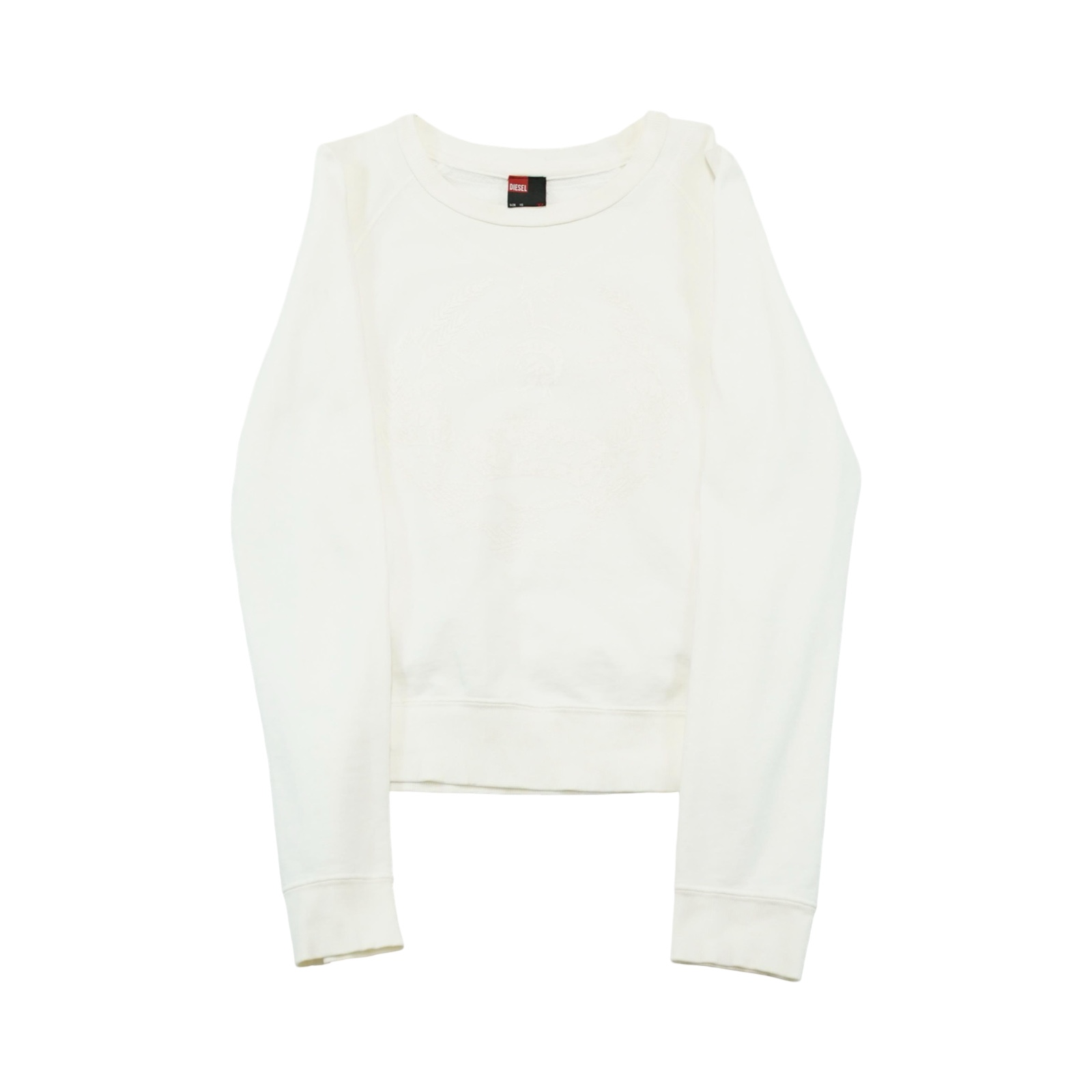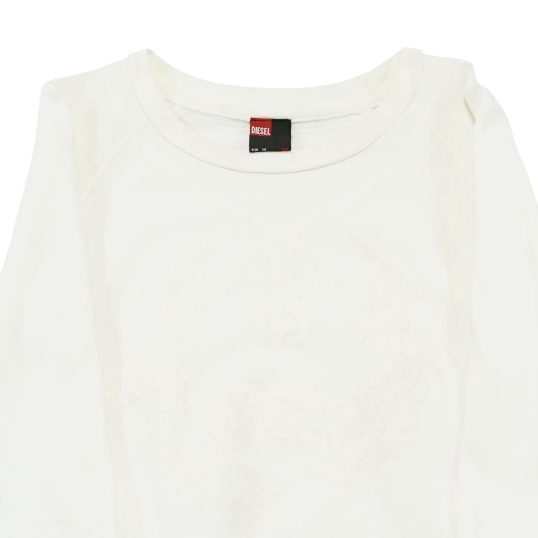 Dámský bílý crewneck značky Diesel s potiskem na přední straně.