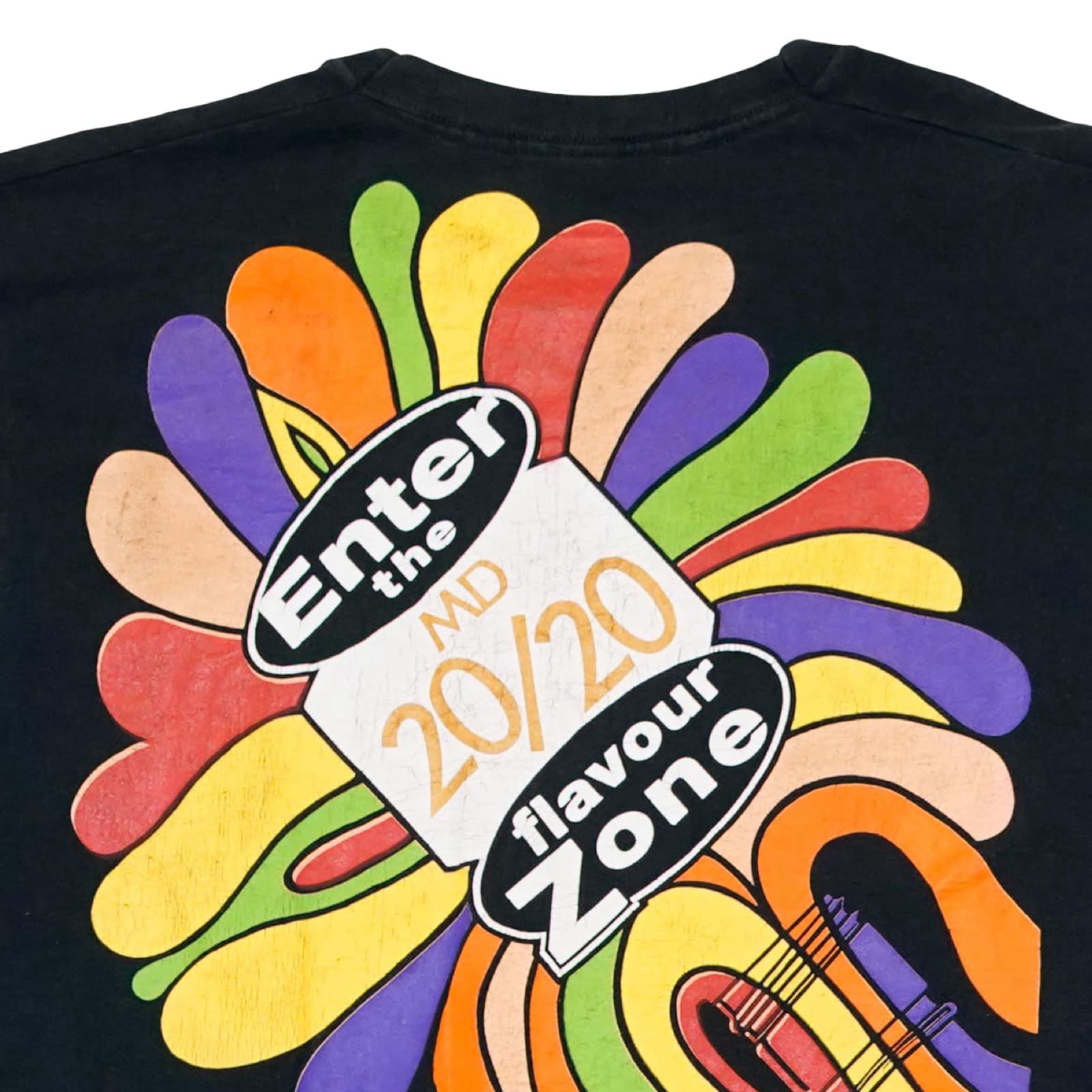 Pánské černé vintage tričko s krátkým rukávem a barevným potiskem Enter the Flavour Zone z obou stran.