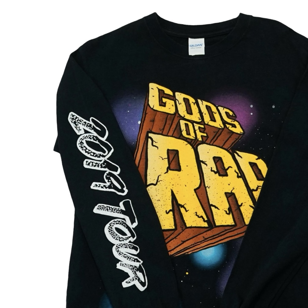 Pánské černé vintage tričko značky Gildan s dlouhým rukávem a potiskem Gods Of Rap Tour z obou stran.