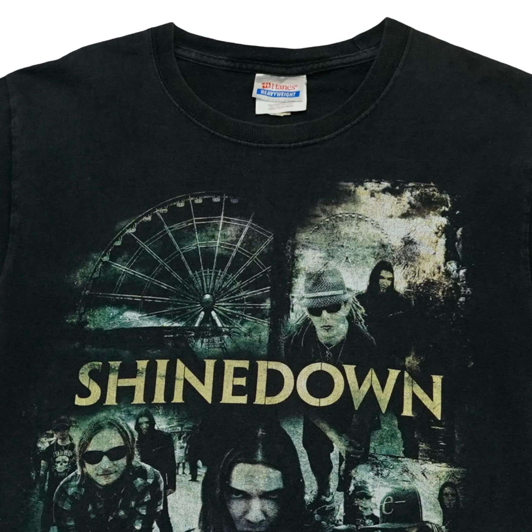 Pánské černé tričko značky Hanes s krátkým rukávem a potiskem kapely Shinedown z obou stran.