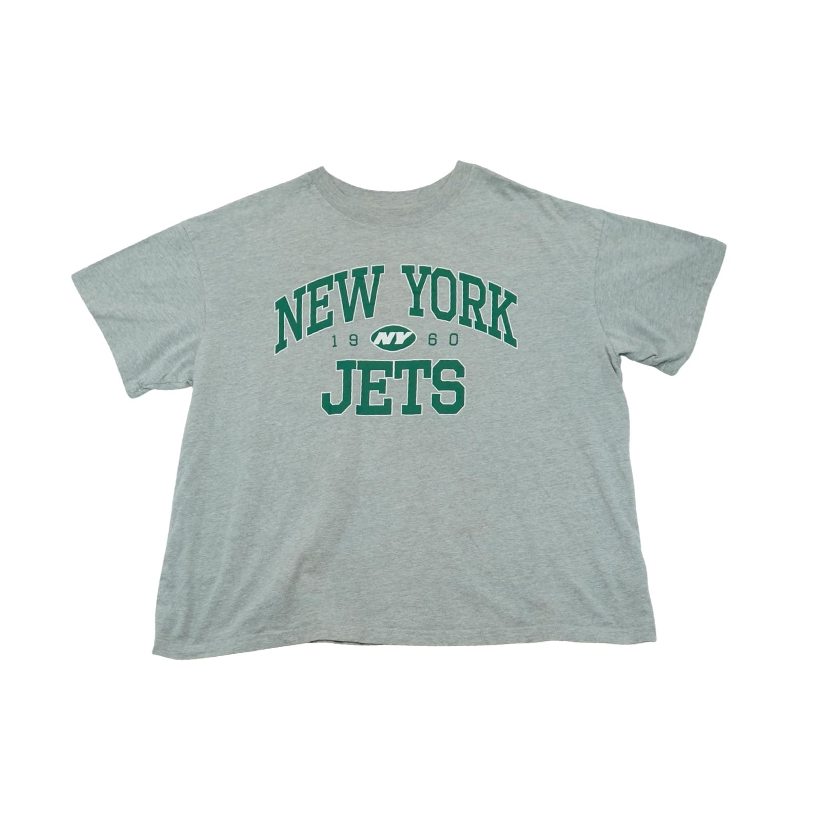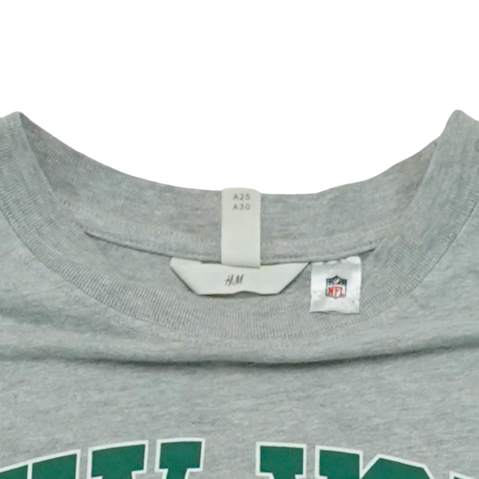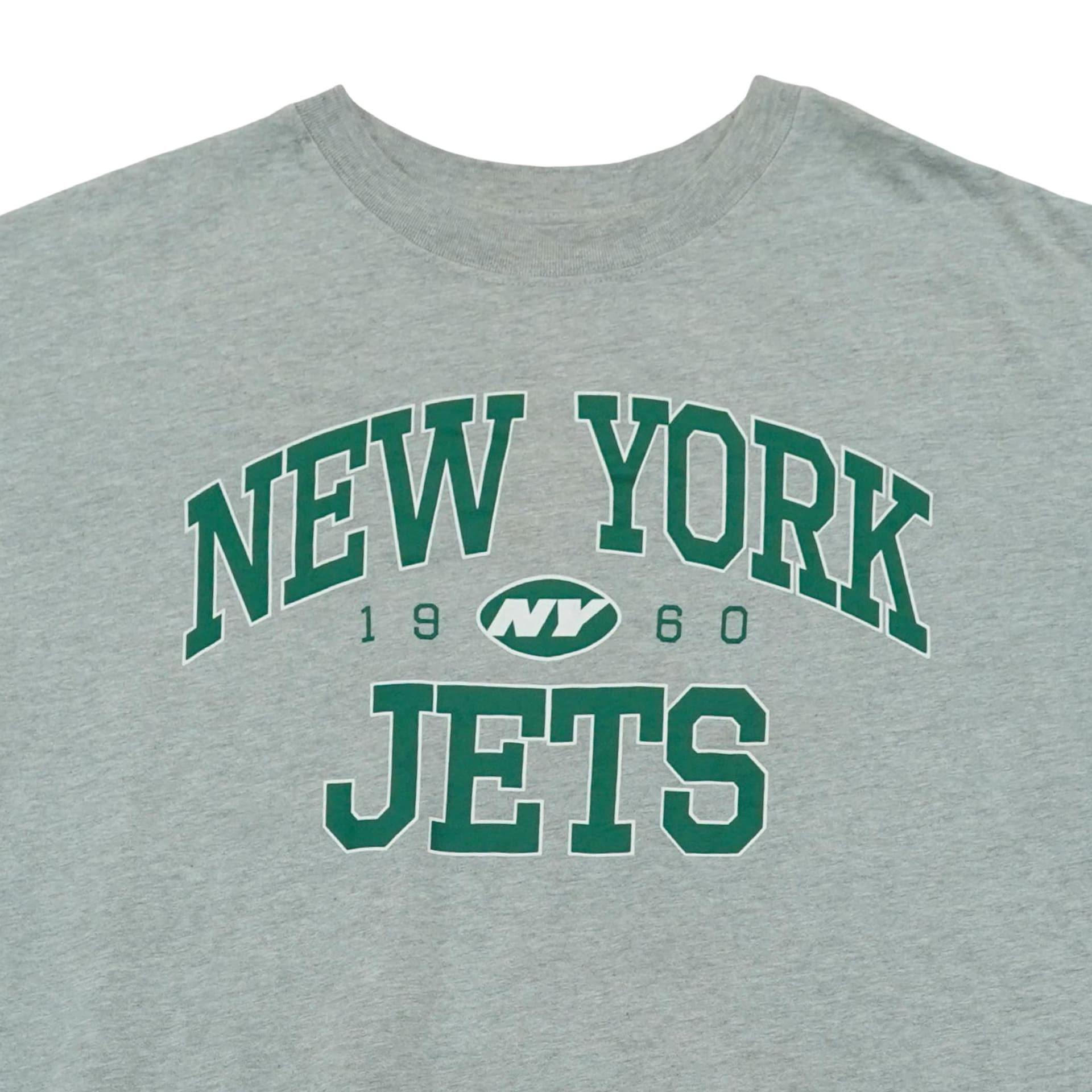 Pánské šedé tričko značky H&M s krátkým rukávem a potiskem New York Jets na přední straně.