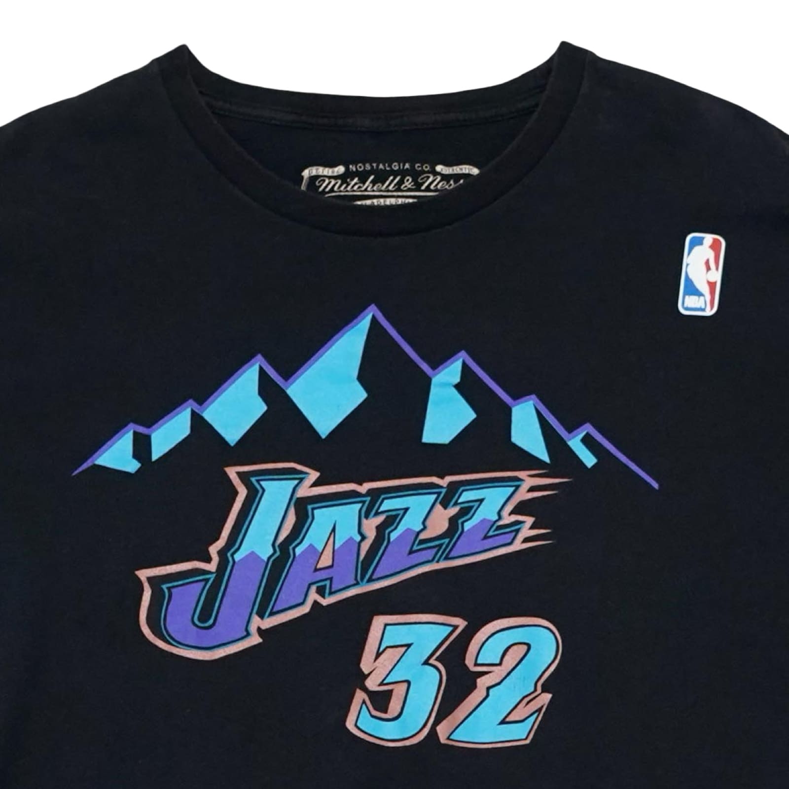 Pánské černé tričko značky Mitchell & Ness s krátkým rukávem a potiskem týmu NBA Utah Jazz z obou stran.