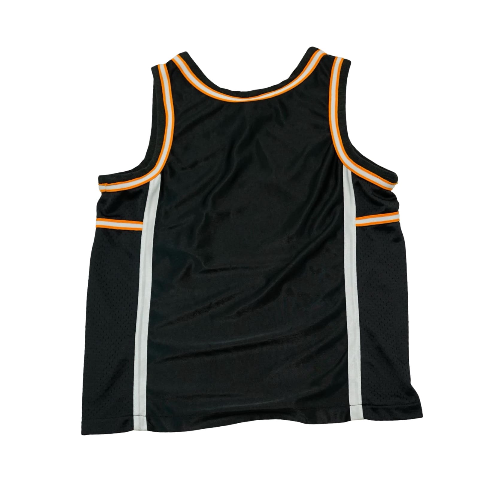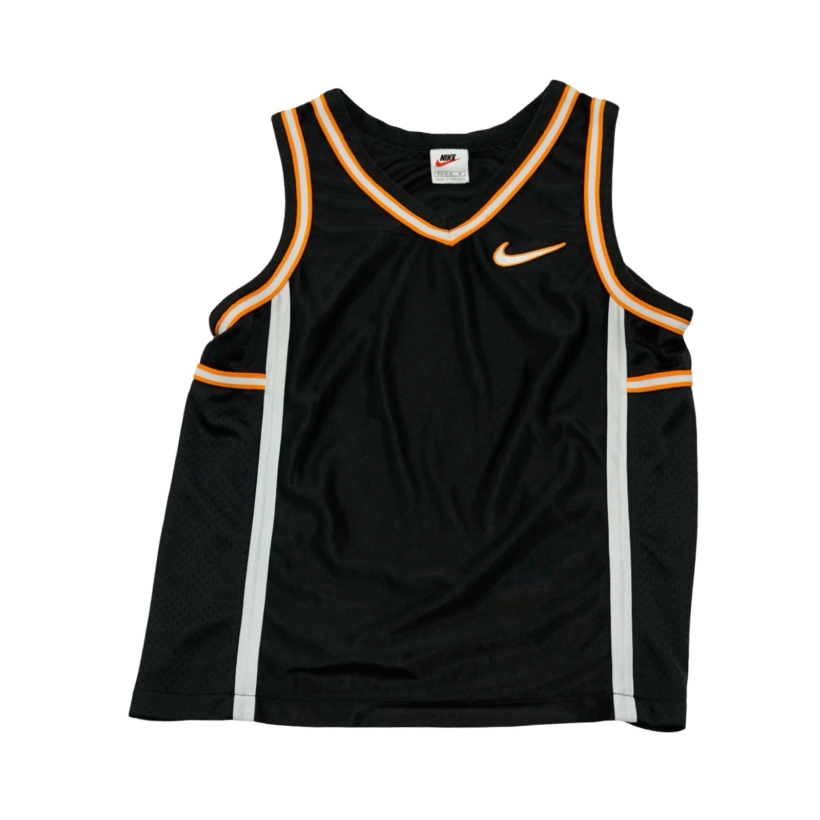 Dětský černý basketbalový vintage dres značky Nike s nášivkou loga na přední straně.