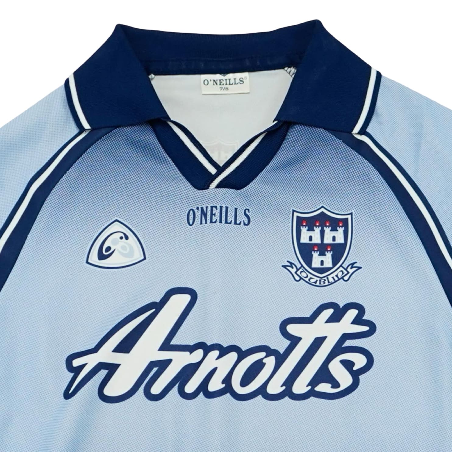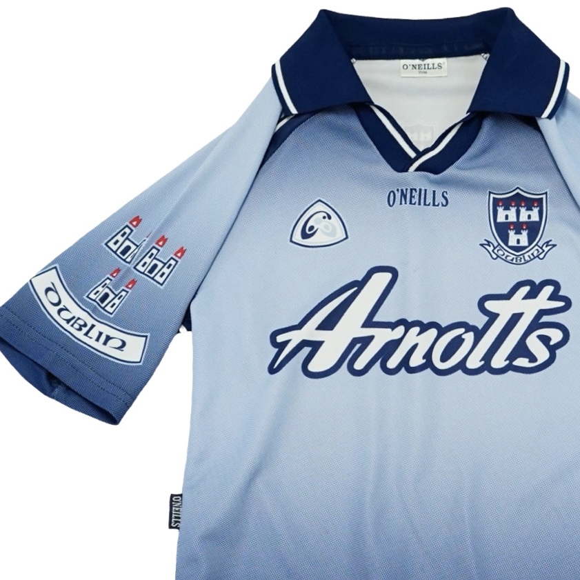 Dětský modrý vintage fotbalový dres značky O’Neills s krátkým rukávem