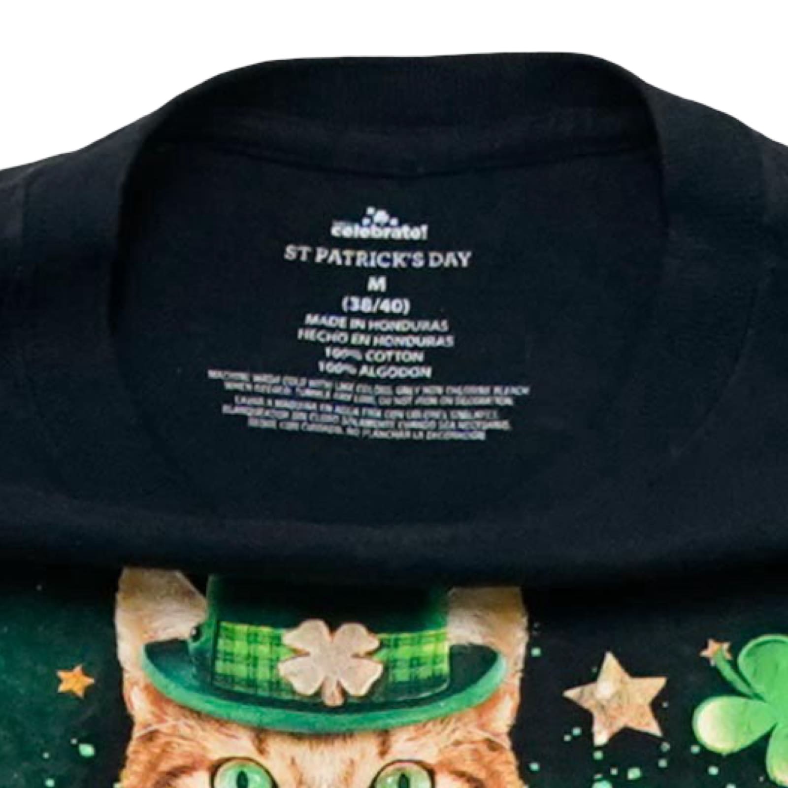 Pánské černé tričko s krátkým rukávem a potiskem St. Patrick’s Day na přední straně.