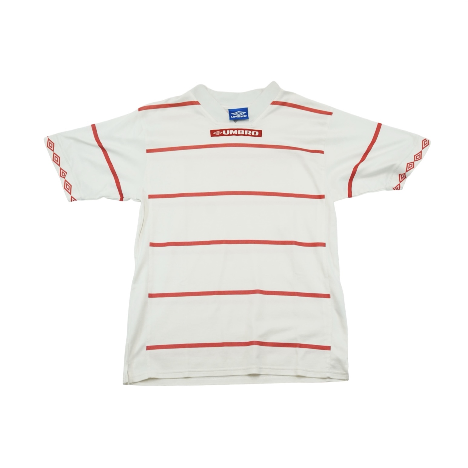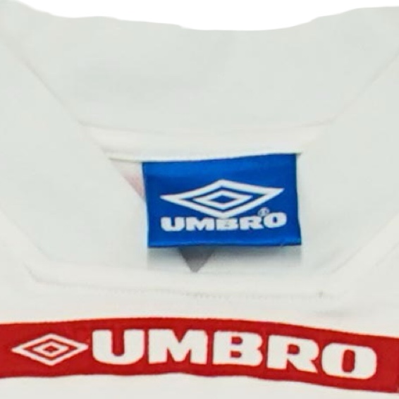 Pánský bílý fotbalový vintage dres značky Umbro s krátkým rukávem.